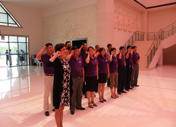 2011年7月1日,是偉大的中國共產黨建黨90周年紀念,為紀念這一偉大時刻,深情回顧黨的奮斗歷史,熱情謳歌黨的光輝業績,繼承和發揚黨的光榮傳統和優良作風,進一步增強黨組織的凝聚力和戰斗力,公司組織全體黨員和入黨積極分子來到如皋紅十四軍紀念館。在莊嚴肅穆的氣氛中,公司黨員一行在群雕前獻上花籃并默哀行禮,向革命先烈表達崇高敬意。所有黨員面對鮮艷的黨旗,高舉右手,重溫入黨誓詞,喜迎建黨90周年。隨后,黨員們懷著無比崇敬的心情參觀了紅十四軍紀念館。(湯琪琴) |