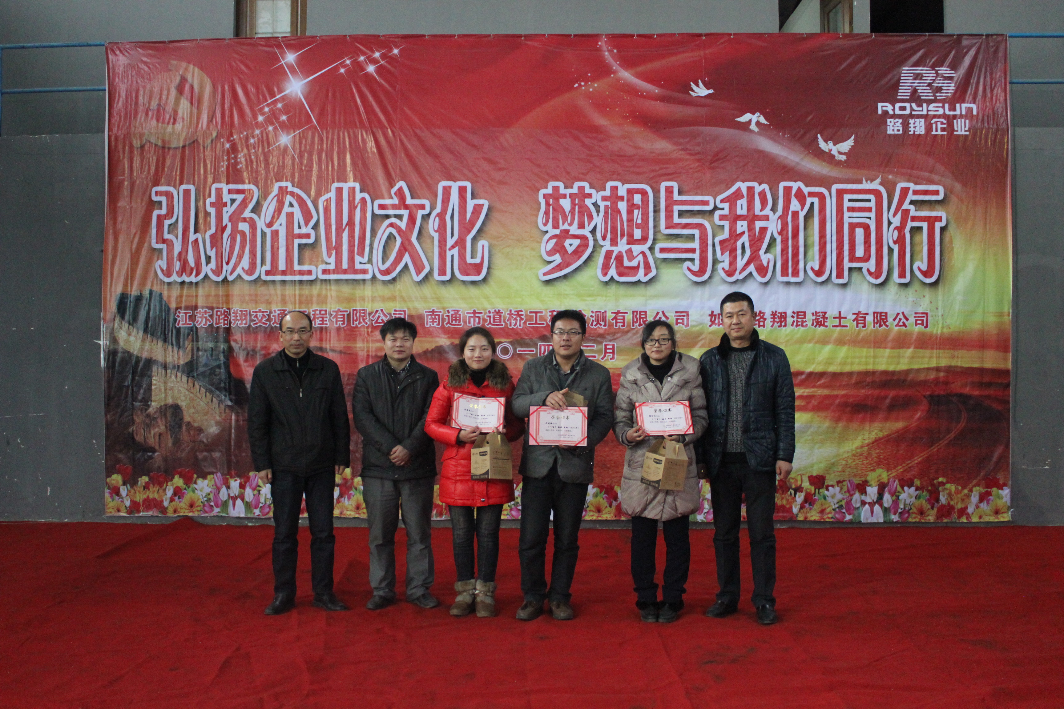 | 2月13日上午8時許,路翔企業2014年度“弘揚企業文化,感恩與我們同行”職工文化節活動拉開帷幕。上午首先舉行的是“中國夢·路翔夢·我的夢”演講比賽,24位選手先后登臺進行了聲情并茂的演講,從不同的角度向大家講述了自己對中國夢、路翔夢的理解以及各自的夢想和近期人生規劃。接下來,進行的是公司的傳統體育項目乒乓球比賽,銀球翻飛,“好球、好球……”的驚嘆聲、歡呼聲、笑聲此起彼伏,一派歡樂的景象。 下午,首先進行的是群眾性體育比賽項目——拔河比賽。來自各部門、分公司、項目部的40位選手分成4隊進行了激烈的角逐,最后路面一隊以較微弱的優勢取得了勝利。接著進行的是最最讓期待的、本次文化活動的重頭戲“士氣展示”。養護、路面、檢測、混凝土、部門綜合隊一一亮相,每一個代表隊都進行了精彩的隊列和自創節目的表演,統一的服裝、巧妙的策劃、精彩的表演讓所有人感到了震撼、也有的則讓人感動得淚流滿面。最后,舉行了本次活動所有項目的頒獎儀式,給這次文化活動劃上了圓滿的句號。[總經辦 朱洪鋼] |