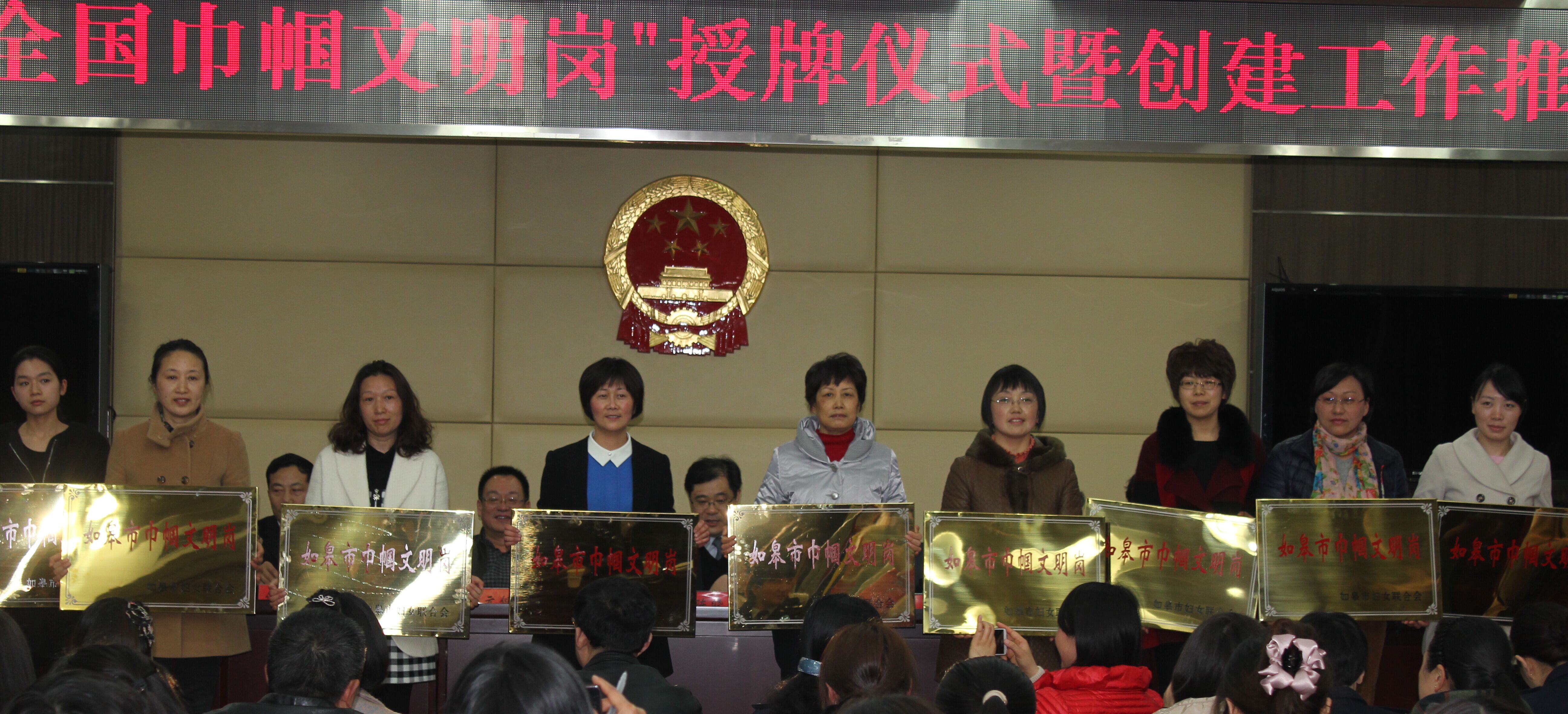 2015年3月25日,在市“全國巾幗文明號”授牌儀式暨創建工作推進會上,我公司財務審計部被市婦聯授予如皋市“巾幗文明崗”稱號。